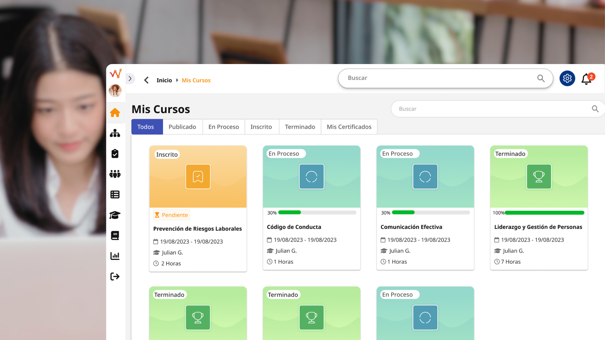 Centralice la gestión de capacitaciones, instituciones y eventos en un solo lugar. Impulse el aprendizaje continuo, certifique resultados y mida el impacto del desarrollo para mantener a su equipo siempre actualizado y en crecimiento.
